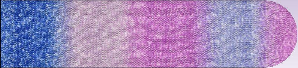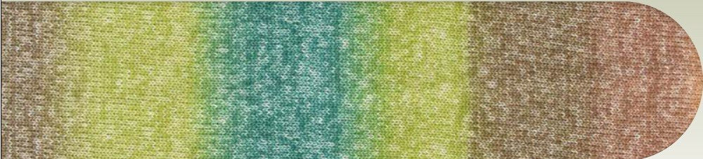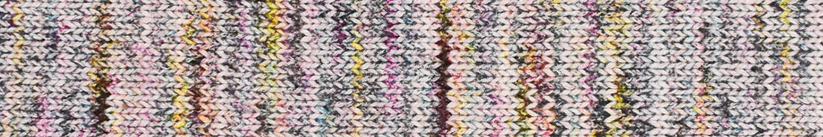 Vibrant, multicoloured sock yarns are a perfect addition to any sock collection. The colour gradient extends over 50g, followed by a striking separating thread and the complete colour gradient again. This creates two identical socks.