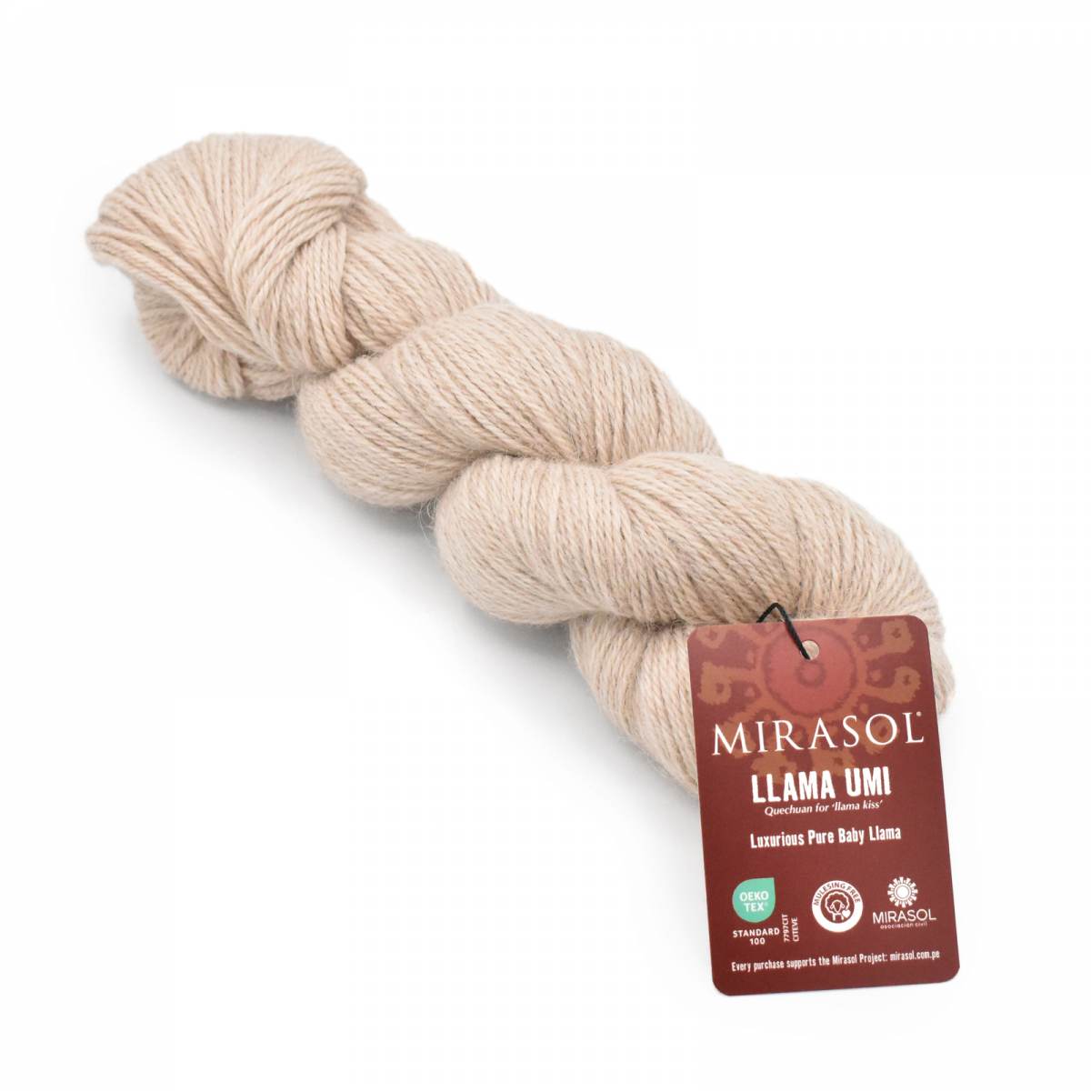 Mirasol Llama Umi is a refined fine-weight yarn spun from 100% plush Baby Llama fibers, delivering breathtaking softness and warmth. Taking its name from the Quechan phrase for "Llama Kiss", each generous 100 g skein offers 328 yards—perfect for lightweight shawls, delicate tops, or cozy accessories. Llama Umi is especially unique because of its natural coloring... This yarn is dye-free! Knitting at a lace-like gauge of 23–26 stitches per 4″, it blooms into a fabric that's both airy and elegant.